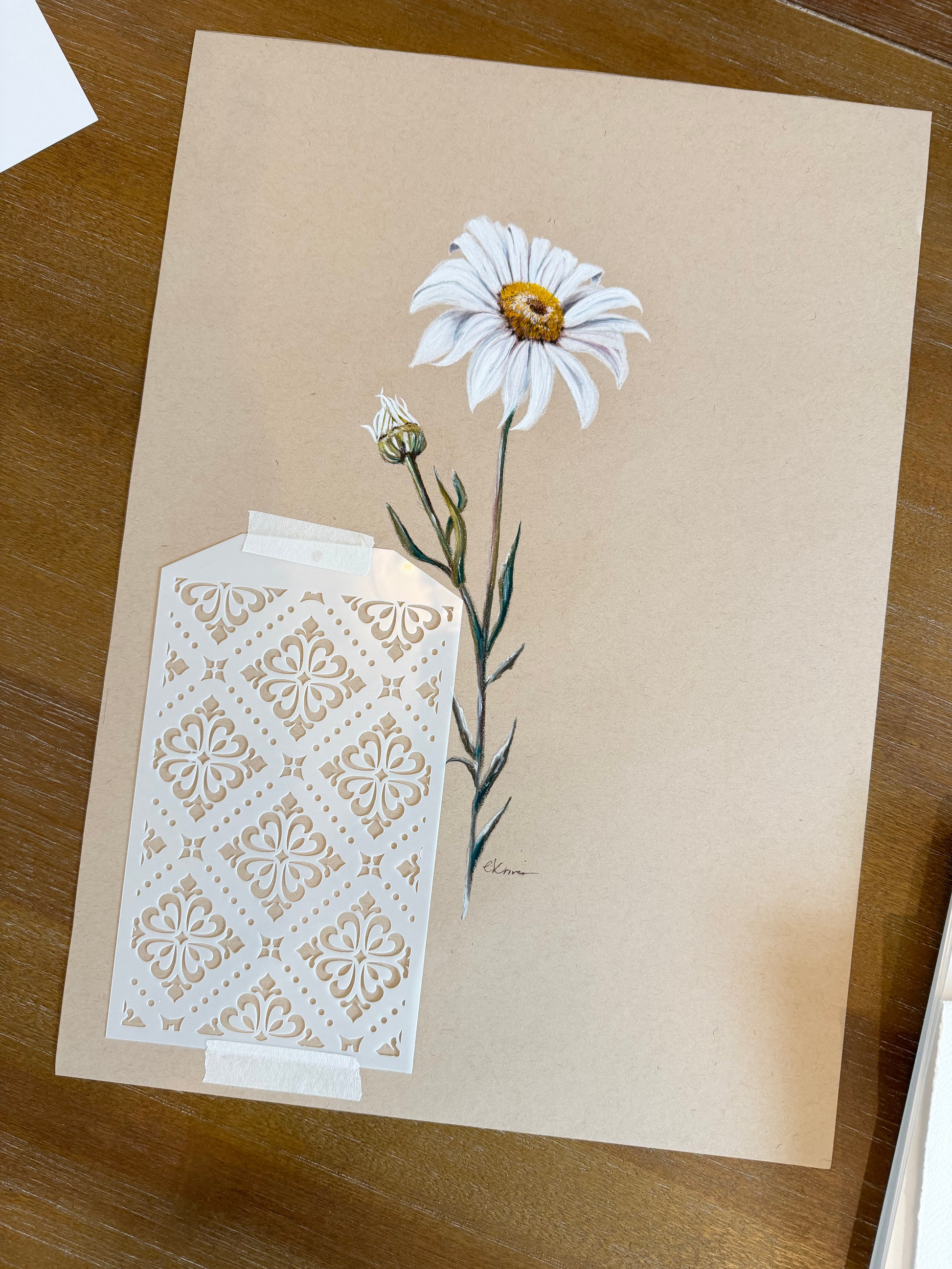 Continuing my carandache cottage charm theme, this is daisy number 2. This is an original piece of art on toned paper. Art size is 15.5x10.5 with the paper size having room for matting and framing.