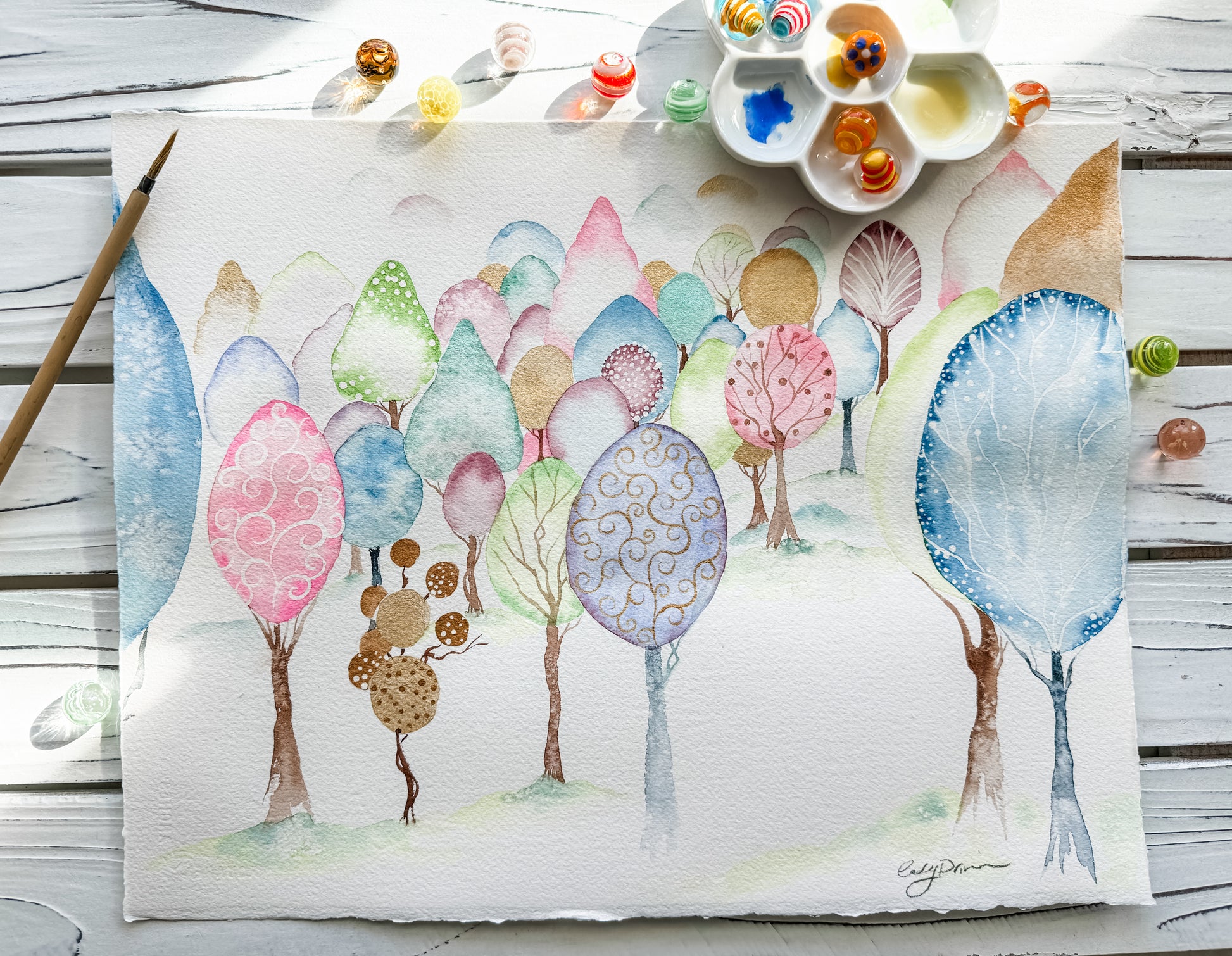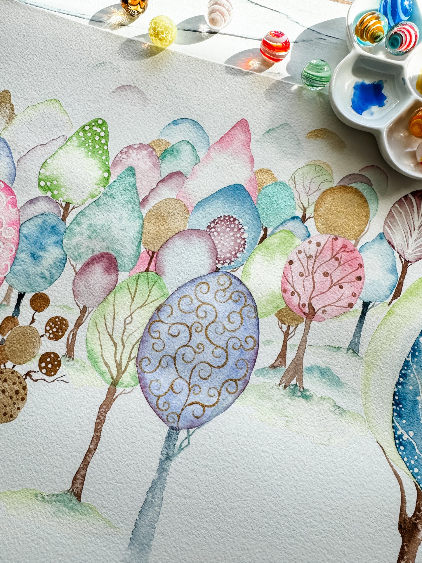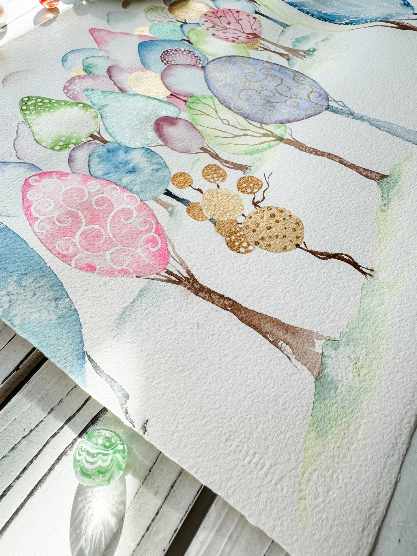 This magical forest piece was designed to be hung either as a set or individually.