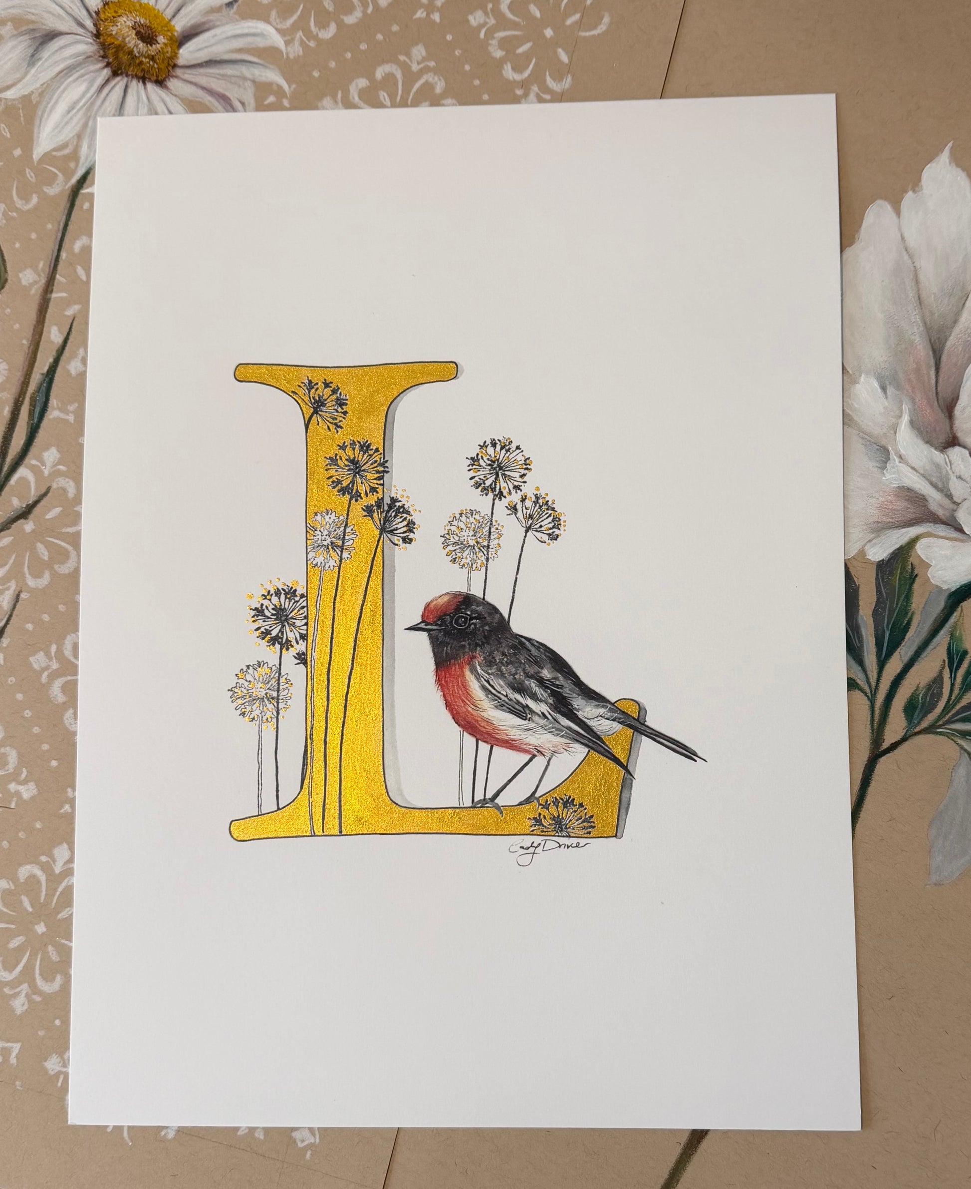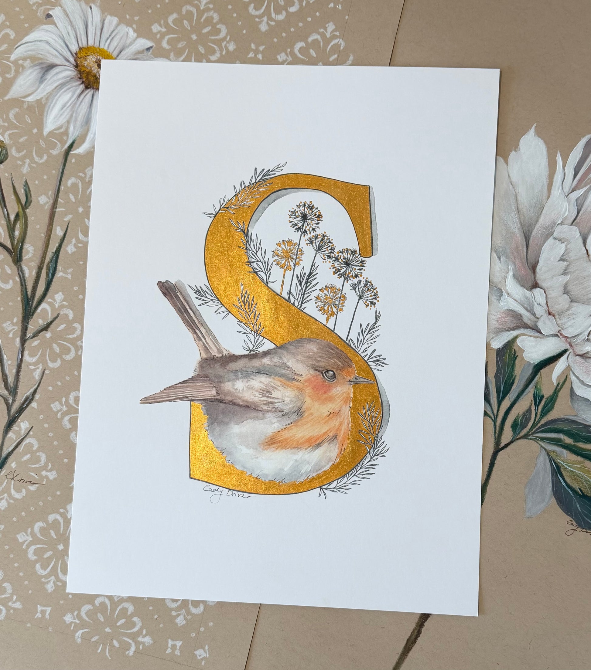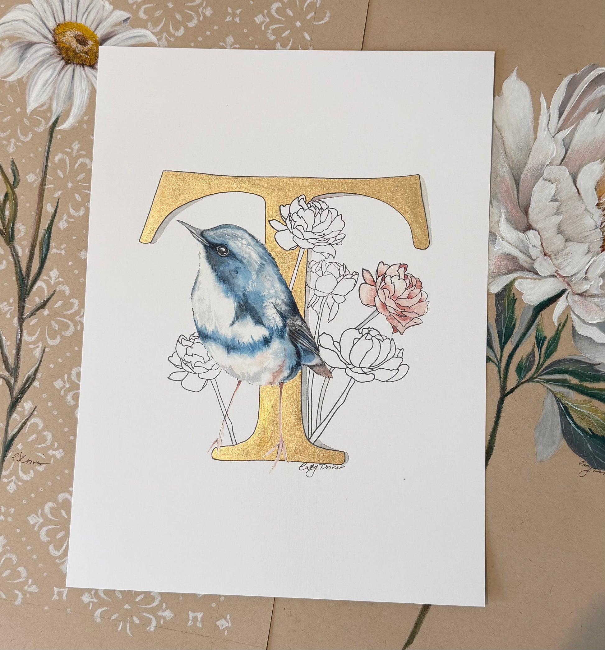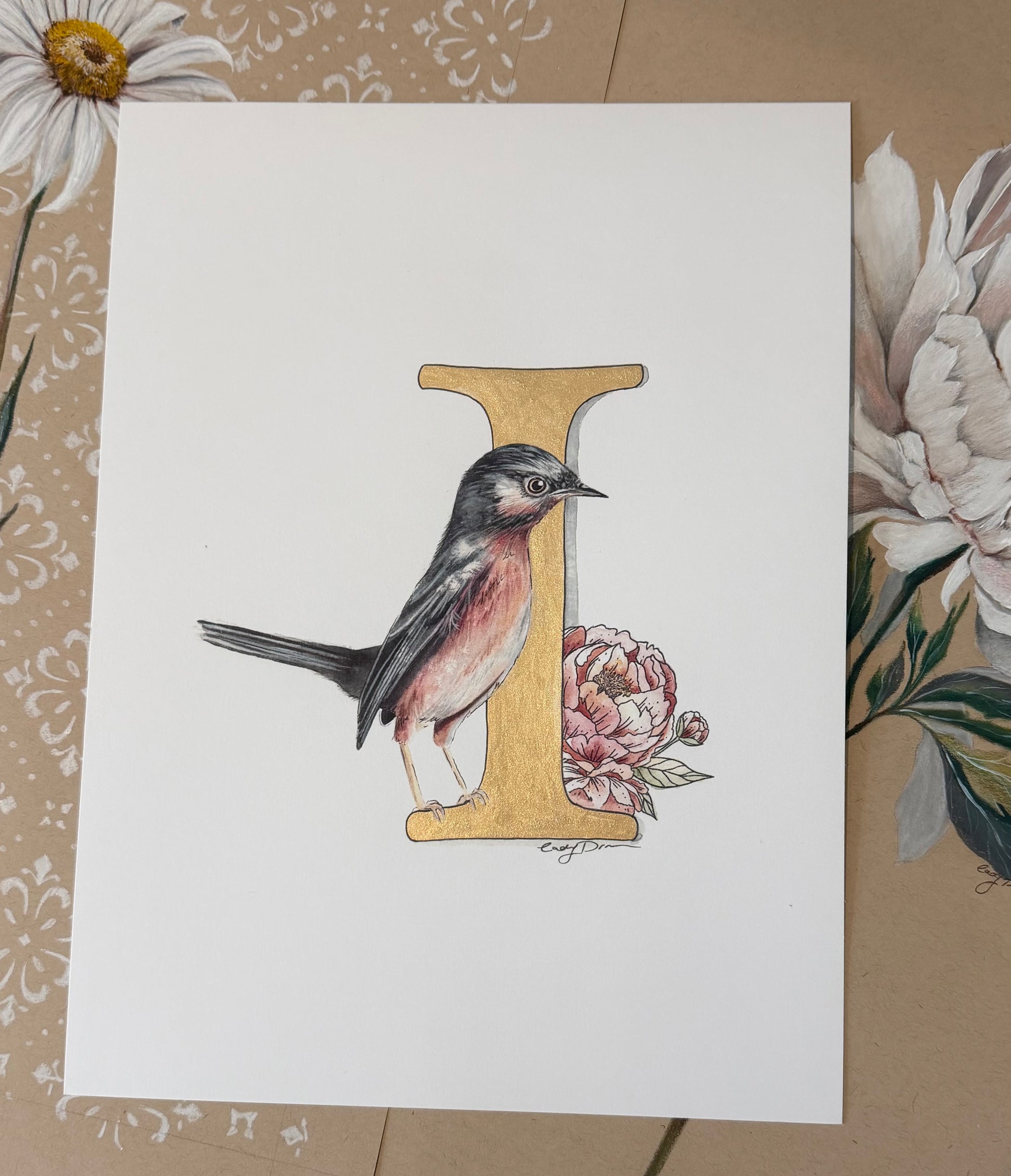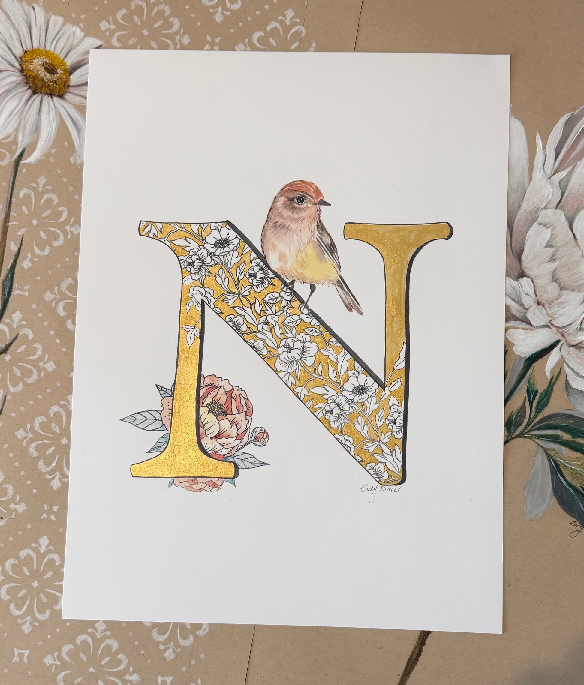 There's ALSO the option to create a custom print where you choose the birds, flowers, colors, etc, so if I don't have the letter you're looking for (more will be coming) you can order a custom one.